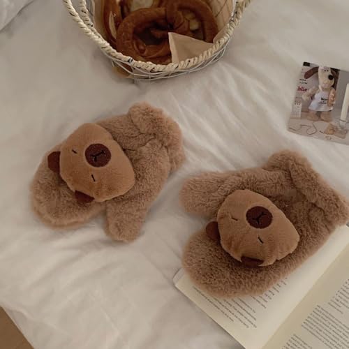 • 🔥 Cute Capybara Plush Scarf: - The scarf adopts a cross design, which can wrap around the neck well, making you more comfortable in the cold winter.These capybara gloves deliver superior durability with double layer reinforced suture and exquisite workmanship. Perfect details and no compromise on elegance make them impossible to break easily, providing long-lasting protection for your hands.