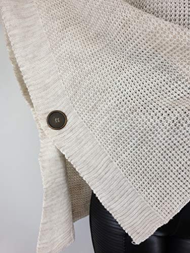 HOT ! Mimosa Ladies Made in Italy One Size Knitted Warm Oversized V-Neck Poncho Cape with Side Buttons (One Size, Cream)
