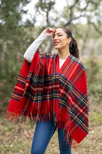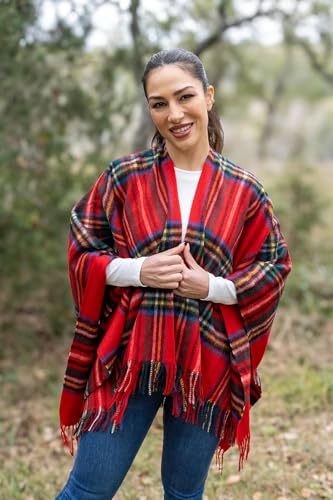 • COSY COMFORT - This winter tartan cape for women will keep you warm all winter long and measures 50 inches long by 23 inches wide