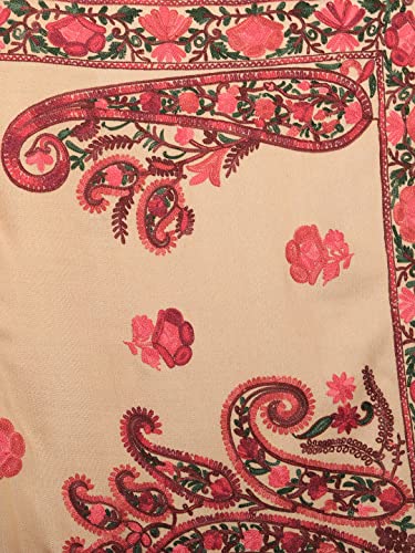 Zamour Kashmiri Indian Aari Embroidery Pashmina Style Wool Shawl Scarf for Women (Brown) 4