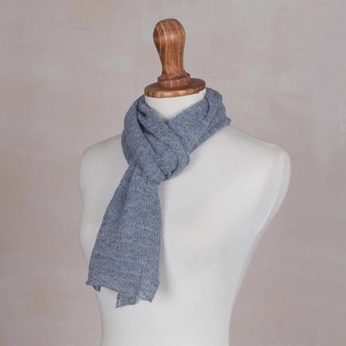 More information about NOVICA Artisan Handmade 100% Baby Alpaca Scarf Wrap in Steel Blue from Peru Wool Accessories Scarves Solid ' Steel Blue Gossamer'