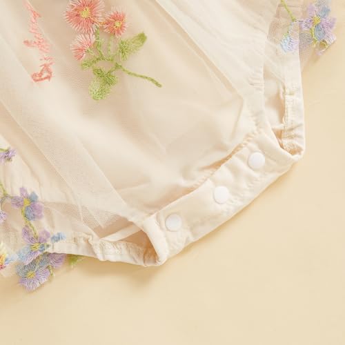 MAINESAKA Smocked Baby Girl Tulle Romper Dress Floral Embroidery Butterfly Wings Fairy Bubble Romper Bodysuit Summer Clothes 4