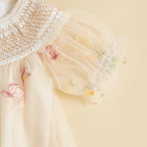 MAINESAKA Smocked Baby Girl Tulle Romper Dress Floral Embroidery Butterfly Wings Fairy Bubble Romper Bodysuit Summer Clothes 6