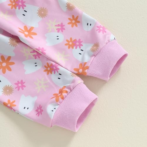 Halloween Baby Girl Outfit Ghost Floral Long Sleeve Round Neck Sweatshirt Tops Pants Toddler Halloween Clothes 5