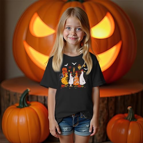 • 👻PACKAGE: 1x Todller Boy Girl Halloween Graphic Short Sleeve T-Shirt. The toddler spooky graphic tees will be great Halloween gifts. Wearing the funny Halloween spooky season chickens shirt, and your child will have an impressive Halloween!