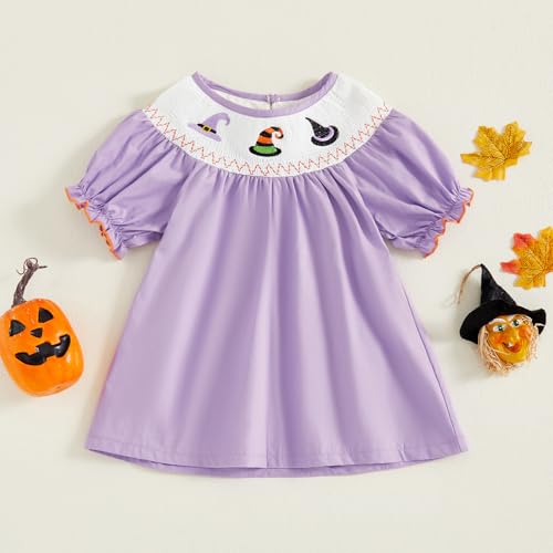 Toddler Baby Girl Halloween Dress Plaid Dot Ghost Pumpkin Short/Long Sleeve Smocked Dress Boutique Clothing 5