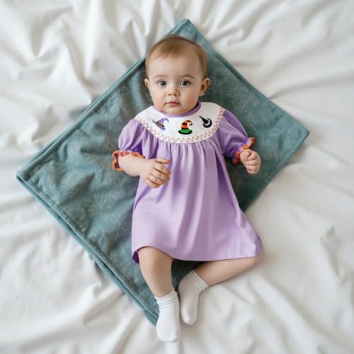 More information about Toddler Baby Girl Halloween Dress Plaid Dot Ghost Pumpkin Short/Long Sleeve Smocked Dress Boutique Clothing