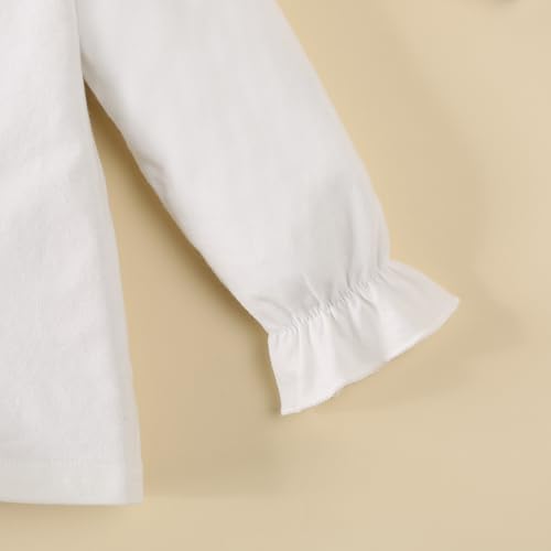 Kids Baby Girl Long Sleeve Collar Shirt Toddler White Blouse Puff Short Sleeve T-Shirt Solid Color Basic Top Bottom 2