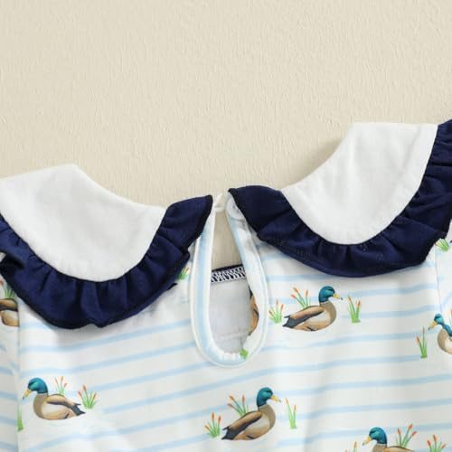 More information about Newborn Girl Fall Outfit Mallard Duck Baby Farm Long Sleeve Doll Collar Romper Stripe Bodysuit 0-18 Months Clothes