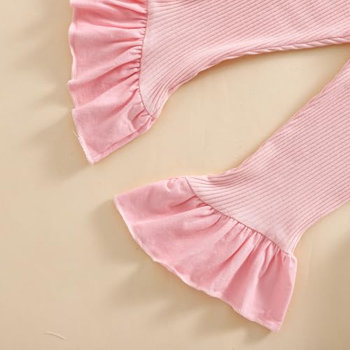 Toddler Baby Girl Clothes Ribbed Knit V-Neck Long Sleeve Tops Flare Pants Infant 2Pcs Fall Outfits Set 3