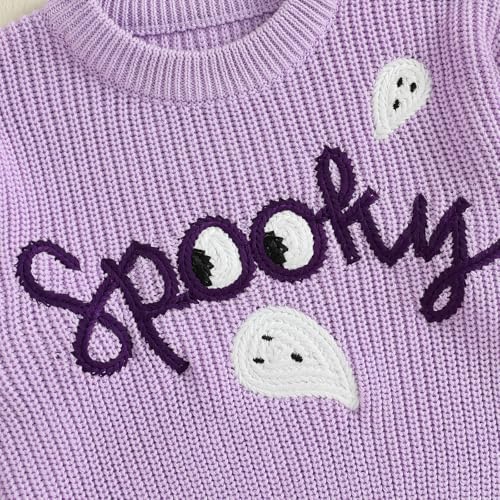 Toddler Girl Ghost Halloween Sweater Embroidery Oversized Long Sleeve Crewneck Pullover Sweaters Baby Spooky Outfit 6