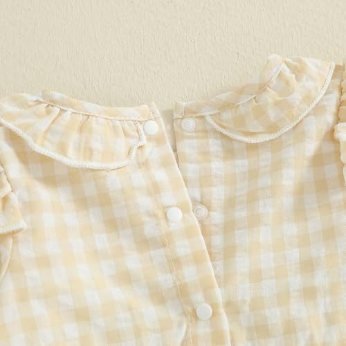 Infant Baby Girl Outfit Goose Embroidery Plaid Long Sleeve Smocked Bubble Romper Bodysuit Newborn Farm Clothes Fall 6