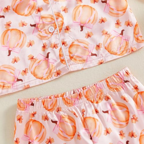 Kuriozud Toddler Girl Halloween Pajamas Pumpkin Silk Satin Sleepwear Little Girls Bow Pjs Baby 2Pcs Halloween Pajama Set 5