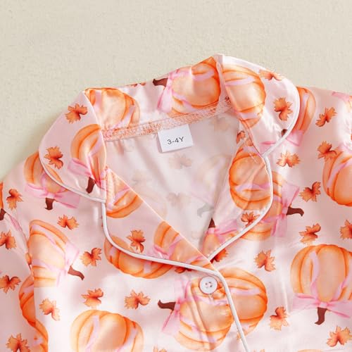 Kuriozud Toddler Girl Halloween Pajamas Pumpkin Silk Satin Sleepwear Little Girls Bow Pjs Baby 2Pcs Halloween Pajama Set 4