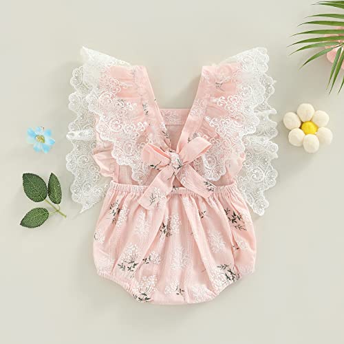 Newborn Baby Girls Lace Ruffle Sleeveless Romper Bodysuit Floral One-piece Jumpsuit Outfit 6