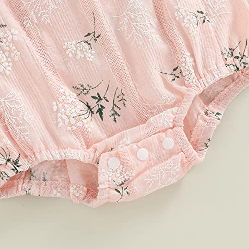 • ❀Design: Baby girls summer casual romper, lace flying sleeve square neck floral playsuit,Snap up design makes it easy for new daddy and mom to help baby changing diaper and wearing.