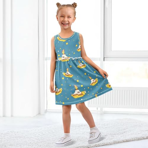 Boccsty Yellow Ducks Hearts Girls Dress Kids Toddler Casual Dresses Summer Dresses 2T-8T 2