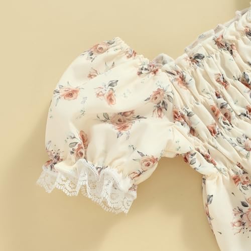 • ❤Design: Baby girl summer clothes, puff short sleeve, flower print, pleated romper is very cute and fashion.The buttons on the bottom are easier to change diapers