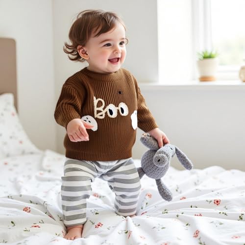 • Feature: baby girl boy Halloween clothes, embroidered ghost and boo letter long sleeve knit sweater pullover top, super cute and adorable