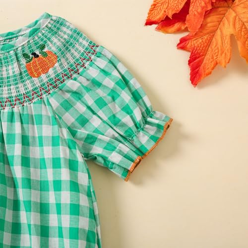 Baby Girl Halloween Outfit Clothes Short Sleeve Pumpkin Plaid Smocked Bubble Romper Bodysuit Jumpsuit One Piece 5