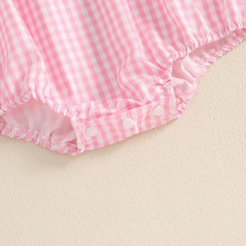 woshilaocai Fourth of July Smocked Bubble Romper Baby Girl American Flag Gingham Bodysuit Summer Baby Outfit 5