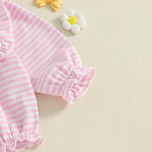 • Features: Baby girl bow bodysuit,baby girl bow romper, baby girl one piece outfits ,baby girl bubble romper features ruffled trim, long puff sleeve and bottom snap design; Paired with bow embroidered and striped patterns, super cute