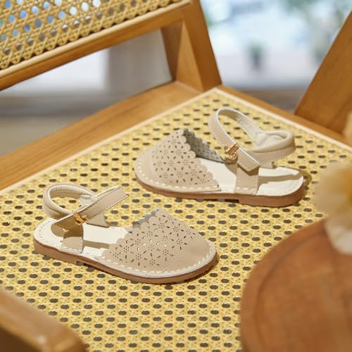 THEE BRON Toddler Girl Vintage Closed-Toe Sandals Genuine Leather Rustic Summer Shoes for 1-8 Years, Size 5-13 5