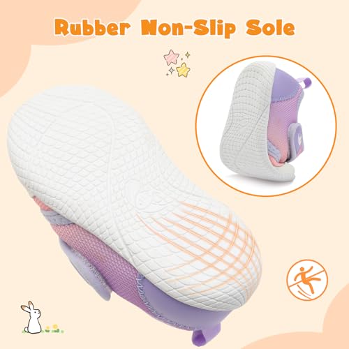 • PROTECTION DESIGN:Wide toe box allow natural splaying of toes for balanced landing and maximum comfort. Also, the toe and heel of the shoe added anti-collision protection design, don't worry about the baby's feet will be injured