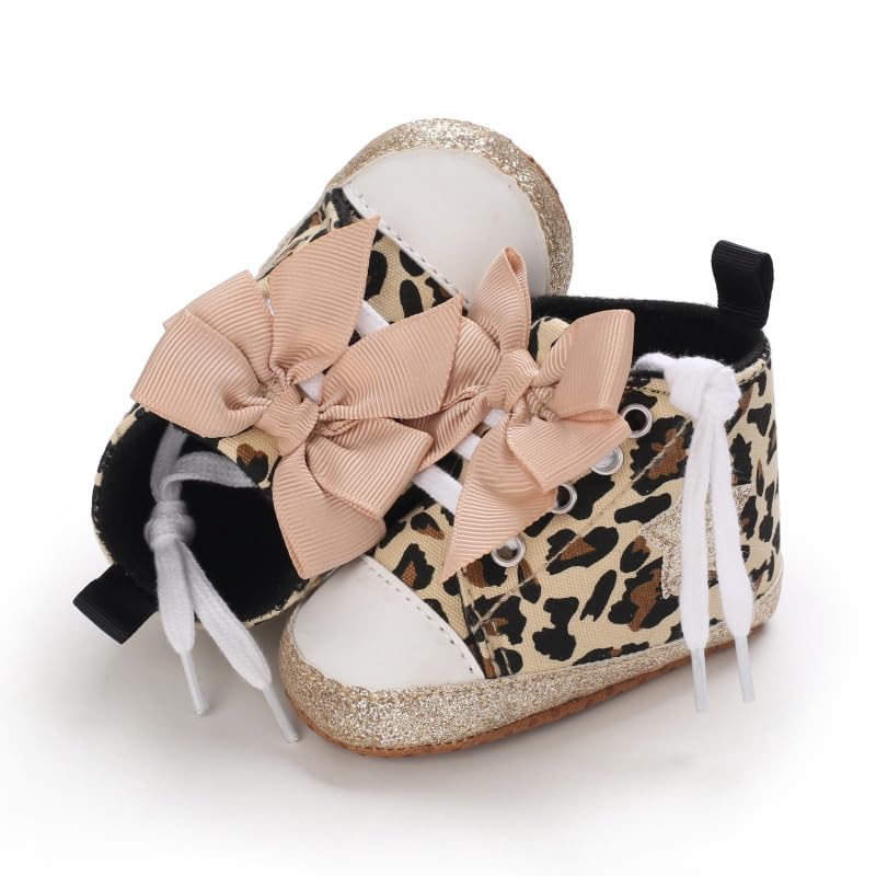 Baby Girls Leopard Sneakers Shoes High Top Ankle Soft Sole Infant Toddler First Walk Shoes 6