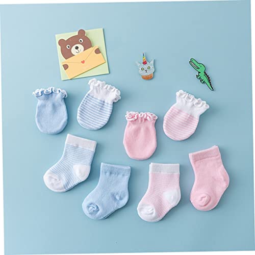4pairs Gloves and Socks Cotton Mittens for Boy Girl Anti-scratch Design Comfortable and Stylish Pink Color for Keeping Boy Girl Warm 4
