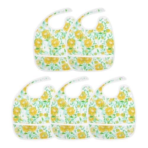 MCHIVER Yellow Flower Leaves Baby Bibs for Boy Girl Toddler Waterproof Feeding Bib Apron with Food Cather Adjustable Cotton Food Eating Bib 2 Pack 5