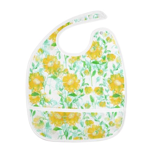 MCHIVER Yellow Flower Leaves Baby Bibs for Boy Girl Toddler Waterproof Feeding Bib Apron with Food Cather Adjustable Cotton Food Eating Bib 2 Pack 3