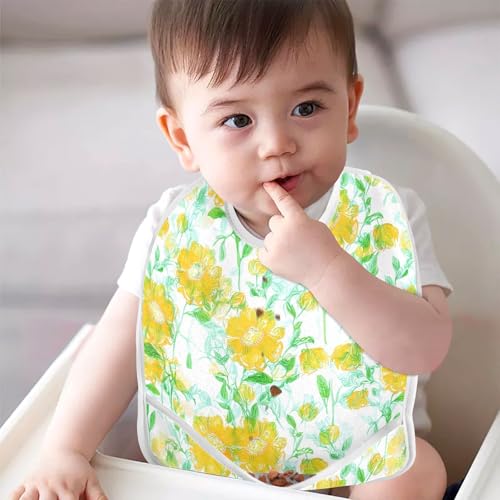 MCHIVER Yellow Flower Leaves Baby Bibs for Boy Girl Toddler Waterproof Feeding Bib Apron with Food Cather Adjustable Cotton Food Eating Bib 2 Pack 6