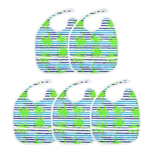 MCHIVER Coconut Tree Stripe Blue Baby Bibs for Toddler Boy Girl Waterproof Feeding Bib Apron with Food Cather Adjustable Cotton Food Eating Bib 2 Pack 5