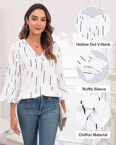 • 3/4 Ruffle Sleeves: Irregular ruffle sleeves, hollow trim splicing on the sleeves adding a touch of liveliness and refinement; the three-quarter sleeve length just covers the arms, the hollow splicing on the cuffs echoes the collar, and the exquisite dividing line can visually create a more three-dimensional sleeve shape, the light texture fabric adds elegance and movement, lengthens the arm lines.