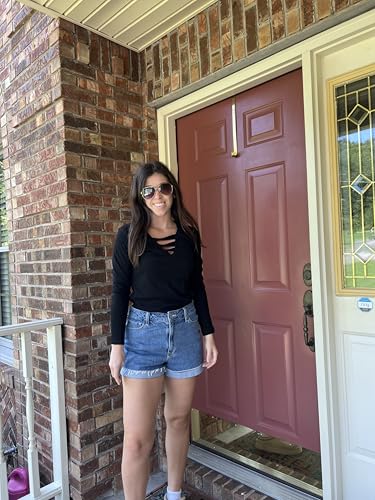 • Features:Deep v neck shirts, long sleeve tunic tops, henley t shirts for women, ribbed knit structure and plain-colored design, sexy front criss cross design, slim-fit silhouette, highlight the perfect figure of women.
