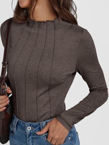 AUTOMET Pleated Long Sleeve Shirts Womens Lettuce Trim Mock Neck Blouses Casual Slim Fit Tops 5
