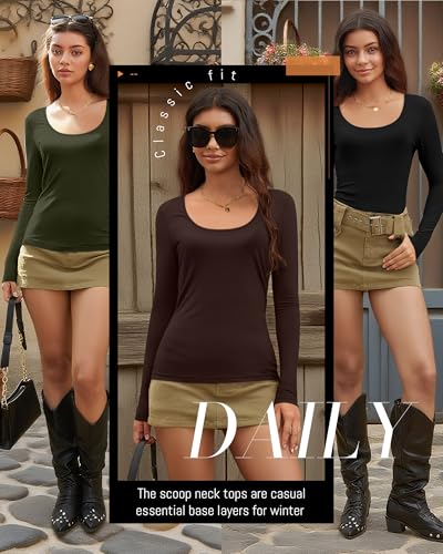 • Scoop Neck and Long Sleeve: our long sleeve tees for women feature a scoop neck, which won't make your neck feel tight and can show the clavicle line; Whether it's worn outside or as a base layer, our scoop neck tops for women can meet your needs