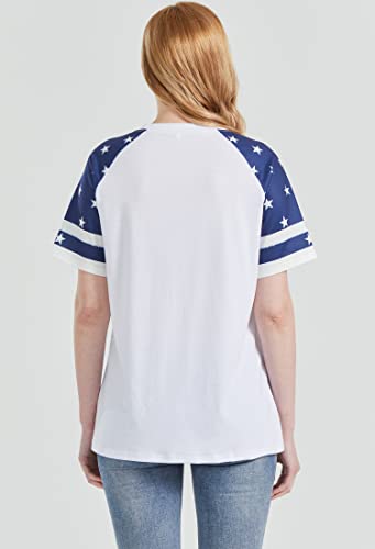 Patriotic Shirts for Women 4th of July T Shirts American Flag Graphic Tees Tops Raglan Short Sleeve Fourth of July Outfits 4