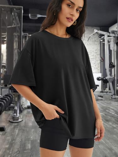 • Design:short sleeve oversized workout shirts for women,short sleeve shirtrs,plus size,crew neck,loose fit tops,basic tees,oversized casual blouse,solid color never out of style,easy to match with every style.