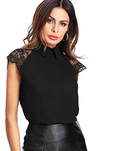 Floerns Women's Lace Splice Collar Cap Sleeve Office Blouse Tops 1