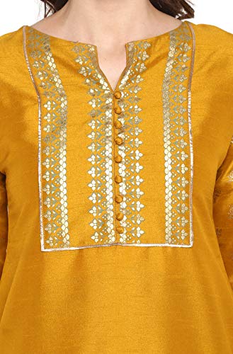 More information about Janasya Indian Women's Mustard Silk Festive Kurta Set for Women