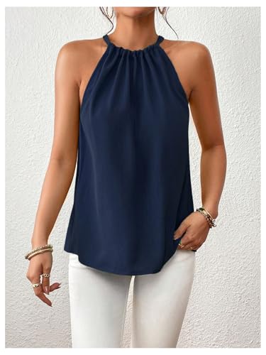 Women's Summer Halter Tops Tie Back Sleeveless Work Shirts Blouses for Women Casual Dressy 1