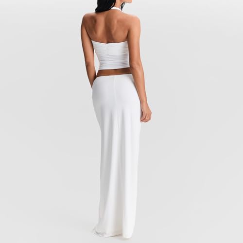HOT ! FOMOYUU Women's Y2K Sexy Halter Tops Knot Front Sleeveless Crop Tank Top Slim Fitted Backless Tanks Summer Going Out Vest