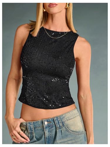 • Features: Party club tank top for women, featuring with sparkly sequin, crewneck, sleeveless, slim fit