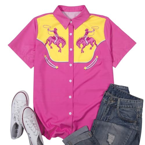 More information about Western Shirts for Women Retro Cowgirl Shirt Rodeo Button Up Tshirt Hawaiian Summer Vacation Short Sleeve Top Blouses