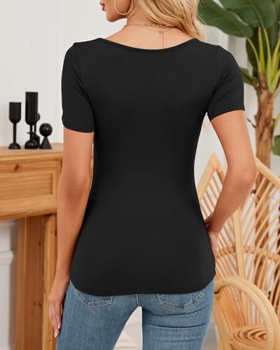 • Summer Essentials: the cotton u neck short sleeve shirts for women have nice breathability, reduce the feeling of stuffiness, and can effectively moisture-wicking to keep dry; The lightweight and stretchy fabric can allow you to move freely in spring and hot summer