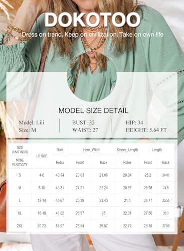 HOT ! Dokotoo Womens 3/4 Sleeve Tops Pleated Business Casual Outifits V Neck Blouses Office Loose Shirts
