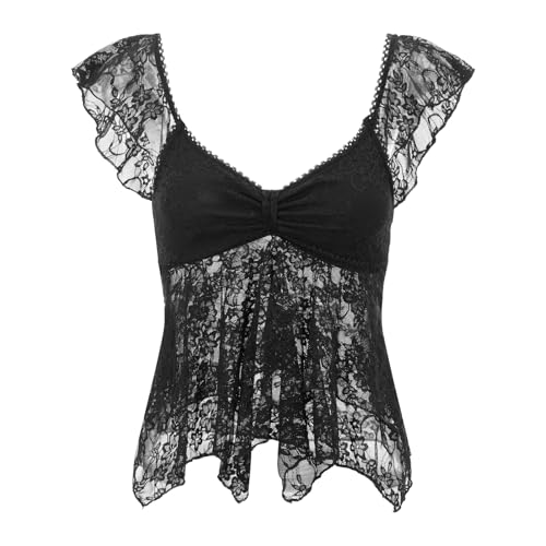 More information about Women Y2k Lace Going Out Crop Top Summer Cap Sleeve Sheer Shirt Tanks Babydoll Tops Coquette Clothes