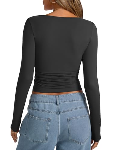 More information about Womens Boat Neck Long Sleeve Shirts Slim Fitted Tops Basic Tees Fall Fashion Going Out Y2K Clothes